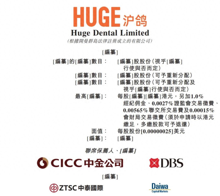 据港交所2月27日披露,Huge Dental Limited(沪鸽)递表港交所主板,中金公司、DBS为联席保荐人。